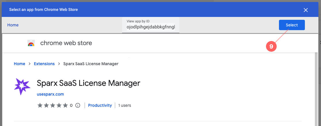 * The Sparx Chrome Extension will display, Click **Select (9)**